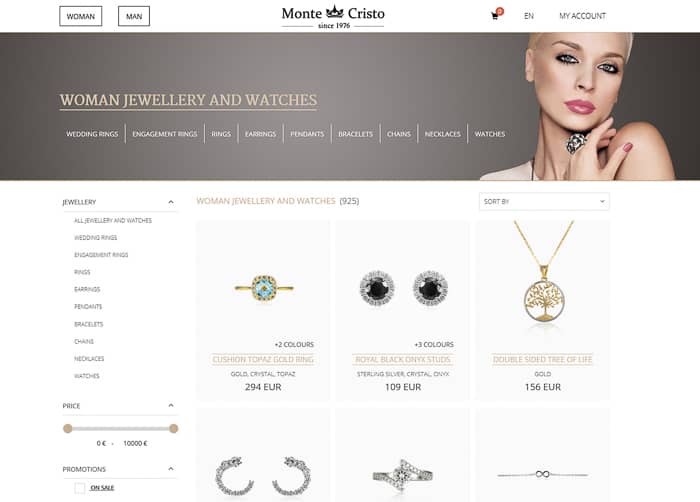 Monte Cristo jewellery internet stranica